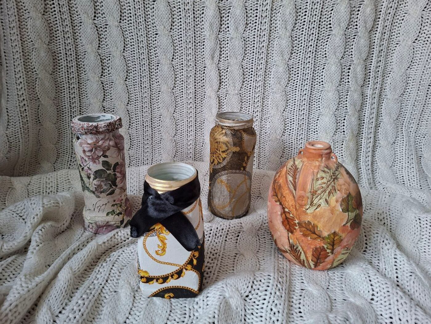 Kafijas, marinētu gurķu, cigoriņu burkas un burciņas; RMB, konjaka, ruma u.c. šķidrumu pudeles - tas viss ir pamats, lai izpaustos transformācijas process. Skaistums mīt arī nevajadzīgās lietās!